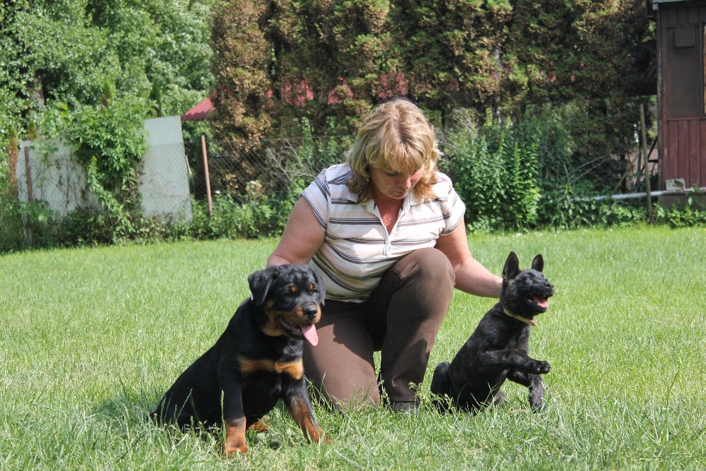 TRÉNUJEME PSY – v malých skupinách, snažíme se o individuální přístup, správnou socializaci, předcházení problémům do budoucna. Výcvik se vždy snažíme nějakým způsobem zpestřit, zabránit stereotypům a rozvíjet vašeho psa. K dispozici máme moderní vybavení, množství výcvikových pomůcek a bezpečné překážky, které do výcviku zařazujeme. Všichni naši trenéři sledují moderní výcvikové trendy. Většina z nich připravuje svoje psy na vrcholové závody a zkoušky a jsou připraveni k jejich složení pomoci i vám. Dělí se s vámi o informace z nejrůznějších seminářů, ze které sami draze zaplatili. A ano, dost často si láme hlavu s vašimi problémy a možným řešením i po skončení lekce.