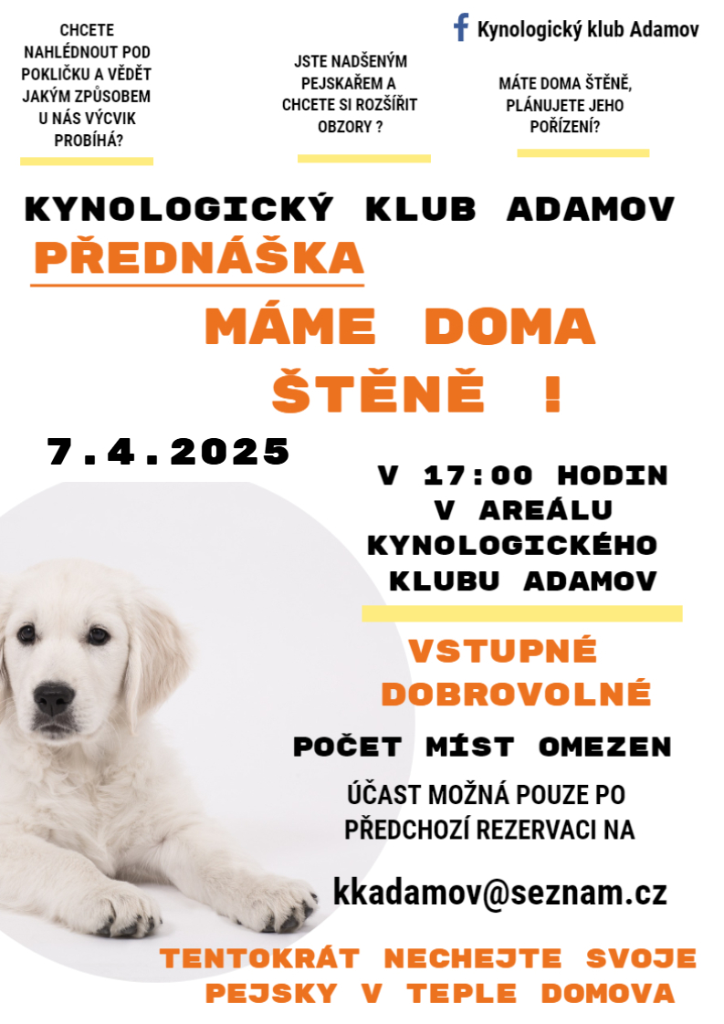 - ÚČAST PEJSKŮ NA PŘEDNÁŠCE NENÍ NUTNÁ, nechte je prosím v teple domova